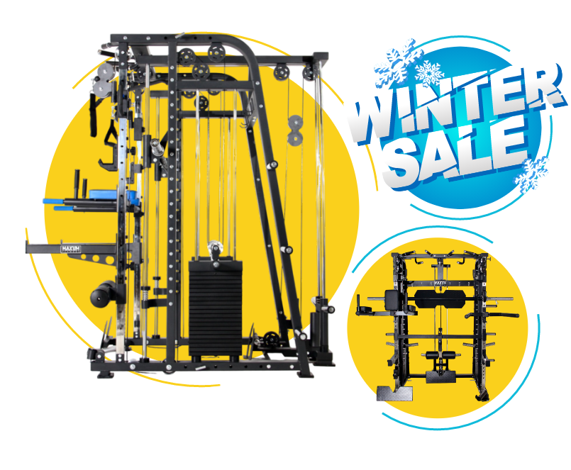 Receive up to 20% off all weights, barbells, benches, and flooring when you purchase a MAXUM fitness Smith Machine.