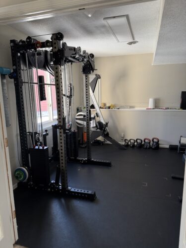 Now assembled, the unit is absolutely solid and the pulleys are buttery smooth. Having the articulating arms at their widest settings allow for a cable cross that rivals commercial gyms. At 5’8, I get full range of motion for biceps curls at the lowest setting. Sitting down on the ground for seated rows at the lowest position is also fine (same with my wife at 5’6).
